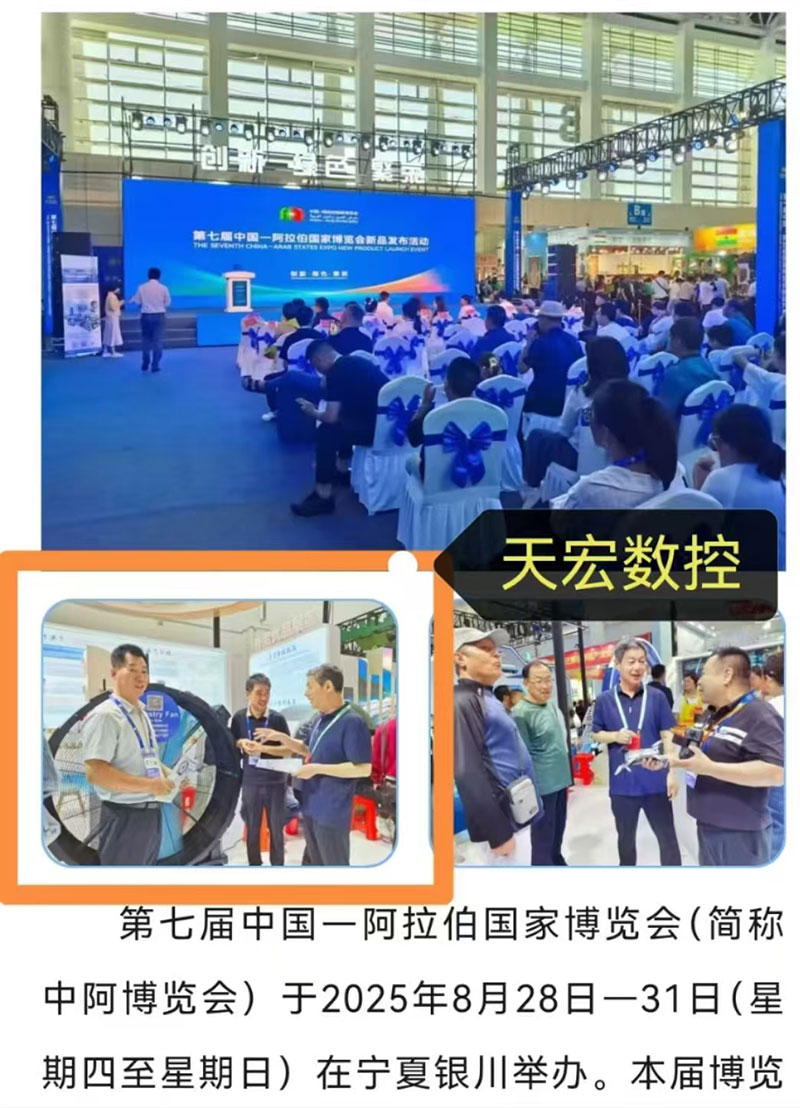 濰坊天宏數(shù)控受濰坊工商聯(lián)邀請參加第七屆中國阿拉伯國家展覽會,好品山東,魯貿(mào)全球,與會領導對天宏設備給予了極大的肯定,展會現(xiàn)場人山人海,購買熱情極高,促進中阿兩地經(jīng)濟繁榮發(fā)展!