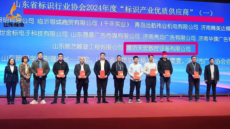 【數(shù)智共融 高質(zhì)發(fā)展】山東省標(biāo)識行業(yè)協(xié)會2024年度會員大會暨標(biāo)識產(chǎn)業(yè)新媒體創(chuàng)新發(fā)展論壇在濟(jì)南成功舉辦,我司做為會員單位應(yīng)邀參會,在2024年度行業(yè)市場占有率、產(chǎn)品創(chuàng)新能力及行業(yè)影響力等維度均有出色表現(xiàn),經(jīng)評審委員會審核,被評為“2024年度標(biāo)識產(chǎn)業(yè)優(yōu)質(zhì)供應(yīng)商”并頻發(fā)證書!2025年我們會再接再厲,為更多客戶提供更優(yōu)質(zhì)的設(shè)備和服務(wù),攜手共進(jìn),再創(chuàng)佳績!